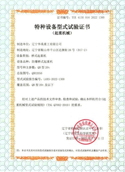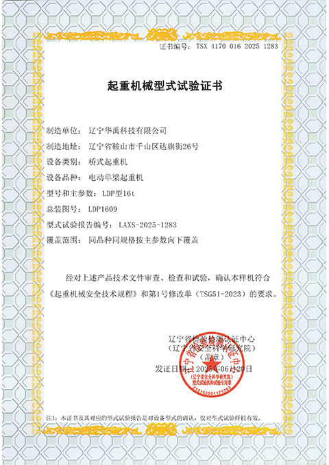 LDP電動單梁型式試驗合格證